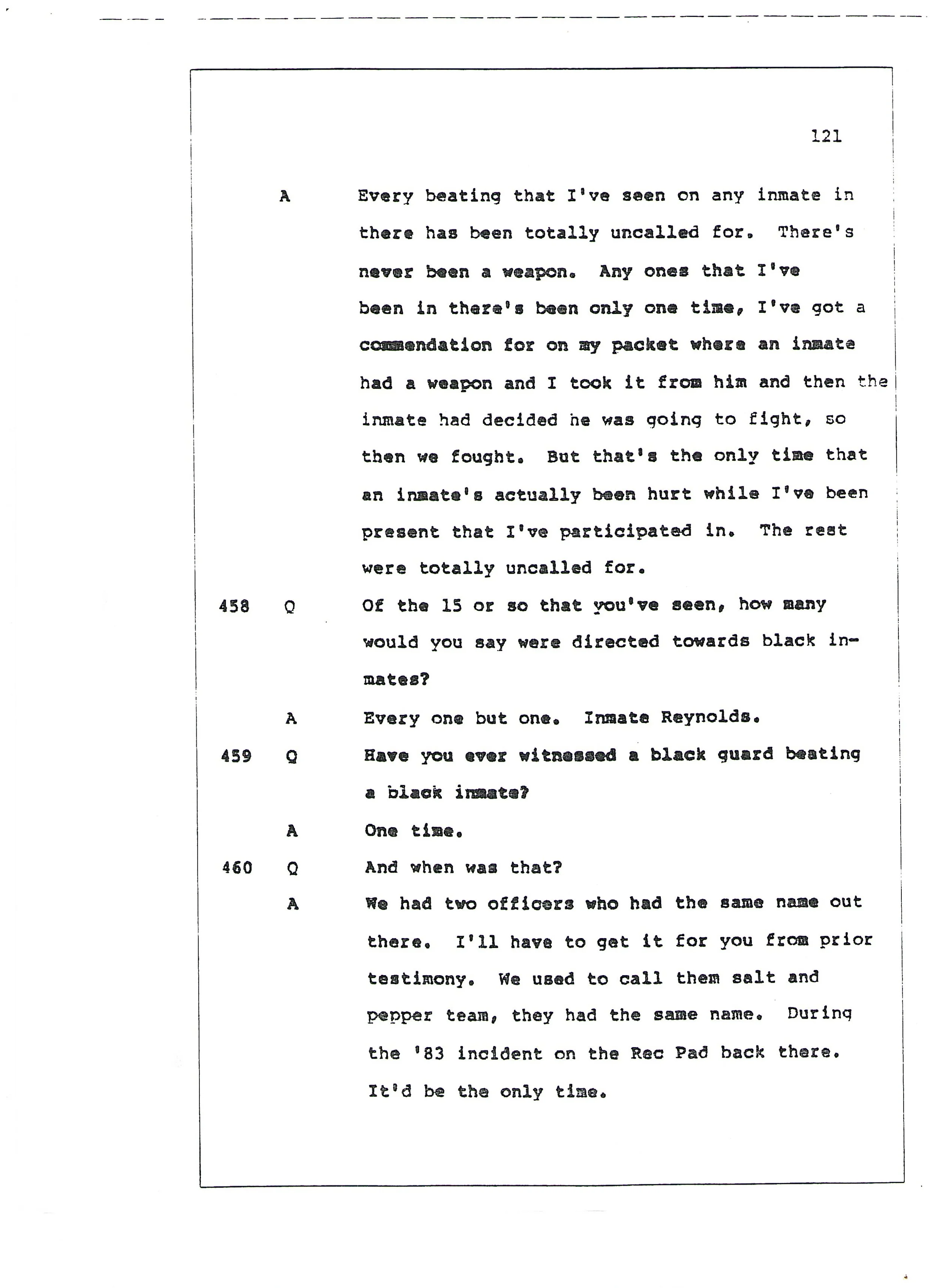 IDOC Watch has obtained a copy of the deposition of ISR guard Michael Richardson, given to the defense attorneys prior to the 1987 trial of the leaders of the ‘85 uprising. Richardson, who had been stabbed during the uprising, attempted to shed light on the existence of the Sons of Light white supremacist guard organization and their practices in his deposition. He had tried to expose the Sons of Light by giving information to the Indiana State Police and the FBI prior to the uprising.